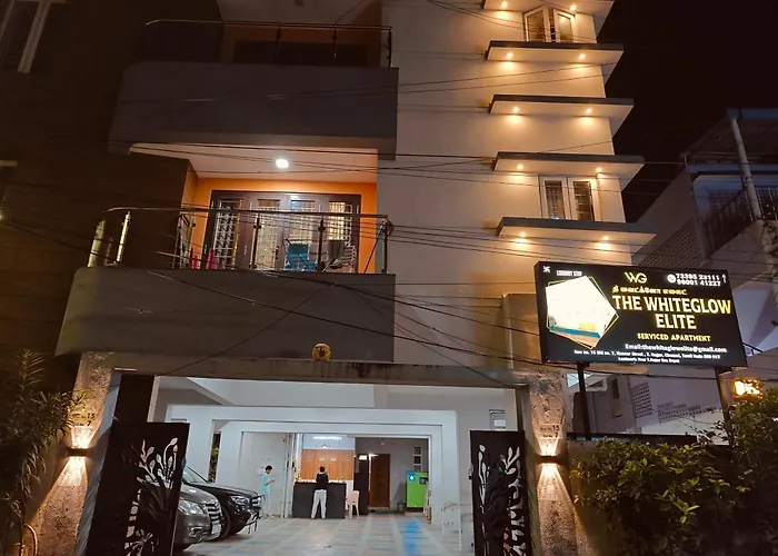 The Whiteglow Elite ligger i Central Chennai bydelen, og tilbyder 2 stjernet overnatningssted med terrasse-restauranten og en have. Der er 3 km fra Vadapalani Murugan-templet og 3,1 km fra Guindy Nationalpark.